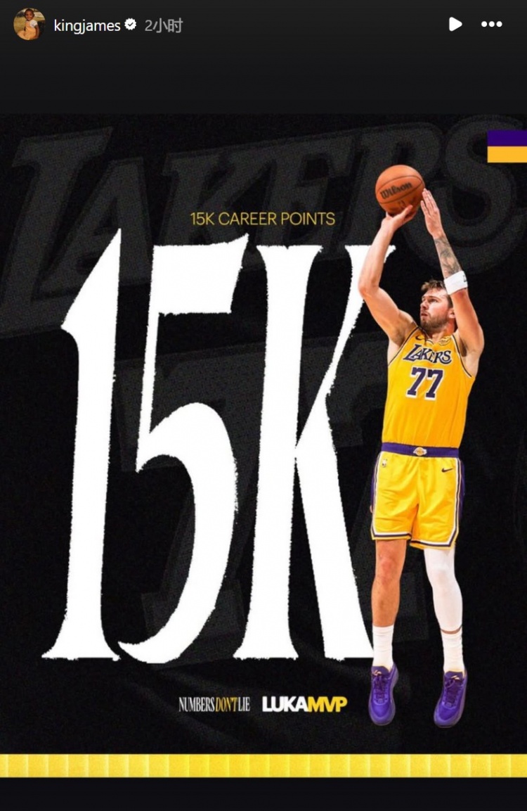 九游会app-詹姆斯赛后祝贺里程碑:东契奇15000分/八村塁5000分/雷迪克100胜